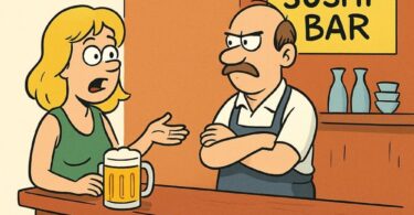 Eine goldene Toilette? Ich glaube nicht”, sagte der Barkeeper und warf ihm einen seltsamen Blick zu.
